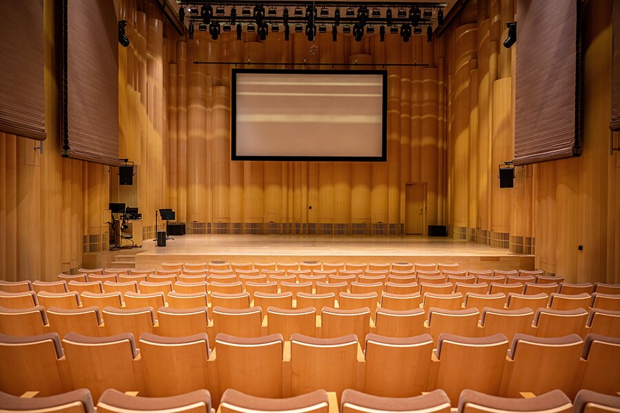 The largest venue is the Red Theater, a 685-seat venue suitable for music, dance, theater and film. It includes a large stage with sprung floor, state-of-the-art lighting, digital and 35mm projection capabilities, an orchestra pit and world-class acoustics with adjustable acoustic panels.
