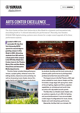 The Arts Center at New York University in Abu Dhabi is a dynamic and innovative hub, describing itself as “a vibrant laboratory for performance”. Recently, two Yamaha RIVAGE PM5 digital mixing systems were chosen for a major sound upgrade of its three performance spaces.