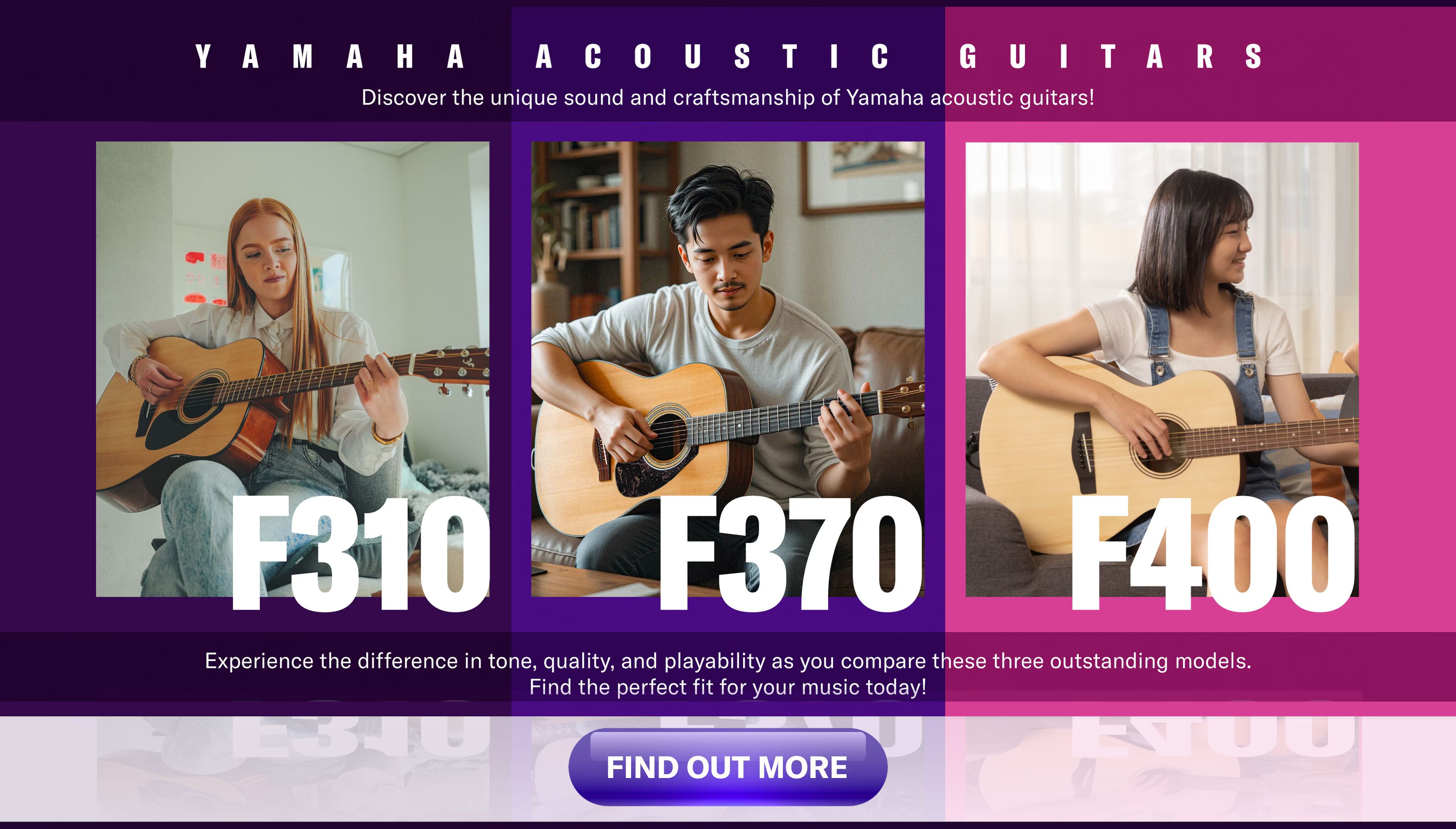 You'll feel confident in yourself and in your playing when you are supported by the F Series acoustic guitar. Yamaha guitars are renowned for their exceptionally high quality—and that's a big reason why the F Series continues to be one of the best-selling acoustic guitars in the world.